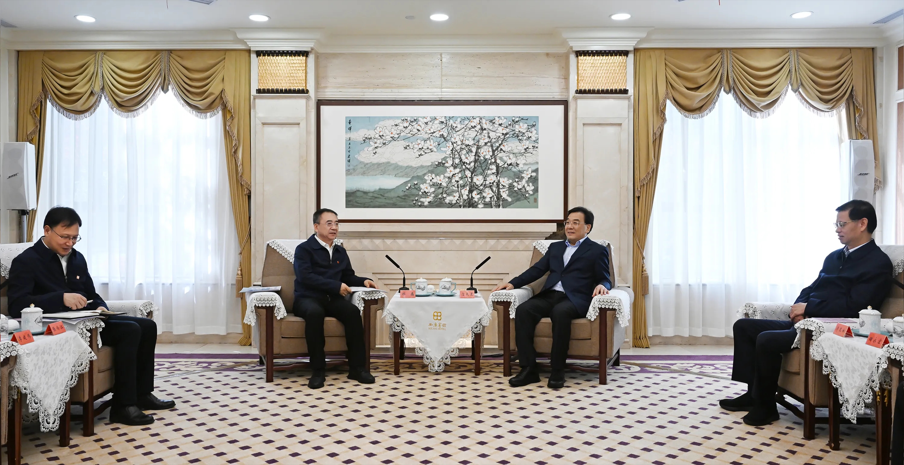 本网讯 11月26日,色情动漫 党组书记、董事长邹磊,董事、总经理、党组副书记张传江在南京拜会江苏省委书记、省人大常委会主任信长星,省委副书记、省长许昆林,双方就进一步加强合作进行了沟通交流。