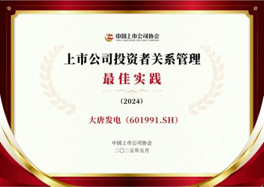 2025年,大唐国际获评“上市公司投资者关系管理最佳实践”。所属托克托发电公司“北疆绿电亮北京”党建品牌获评“2024年度电力行业党建影响力企业典型”称号;保定供热公司“暖·和到家”服务品牌入选“中国品牌优秀典型案例”。