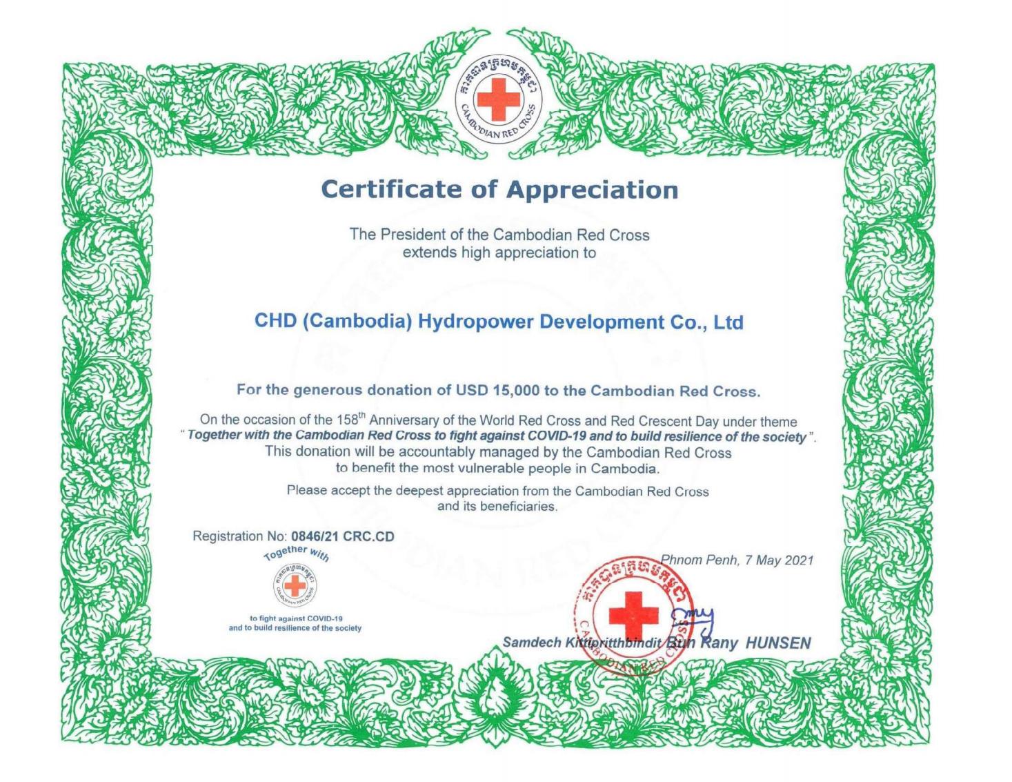 Certificate of Appreciation from Cambodian Red Cross